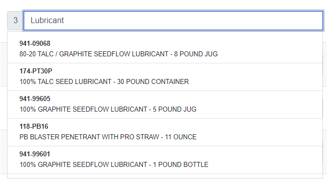 **Note: you must select the part number you want to add from the suggestions box to lock in your item choice.