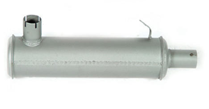 Horizontal muffler, Round body. Inlet 1-1/2" I.D., Outlet 1-15/16" O.D., 15" overall length. Tractors: Cub Cadets 102, 104, 105, 106, 107, 122, 123, 125, 126, 127 (using Kohler 10 & 12 hp 1 cyl. engines).