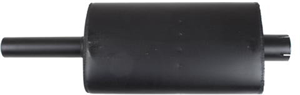 Muffler. 2-3/4" inlet length, 2-3/8" inlet ID, 16-1/2" shell length, 7-3/4" outlet length, 2" outlet OD, 27" OA length. Tractors: D19.