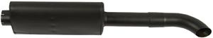 Muffler, vertical oval body. 3 inch inlet ID, 2-3/4 inch outlet OD, 43 inch overall length, 4 inch x 9 inch oval shell, 18 inch shell length, 2-14 inch inlet length, 22-3/4 inch outlet length with bent end. Tractors: 9030 E, 9030 V (1990-1997) Bidirectional tractor. Replaces:09702857.