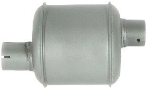 Muffler, vertical round body. 2" inlet ID, 2" outlet OD, 12" overall length, 6" shell diameter, 6-1/4" shell length, 2-1/2" inlet length, 1-3/4" outlet length. Combines: 101, 151, and 203 (gas engine) Replaces: 305469R1 * **